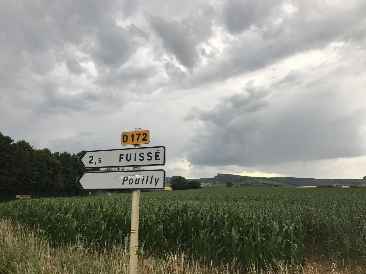 The clouds were gathering as I approached Prissé – French radio warning of storms across many of France’s départements. I shoe-horned my Scooby (car) into a place by some vines and walked to the château – drops of rain heralding the storm to come – fortunately the weather kindly waited until 5 minutes after the 19h30 start-time before the wind, rain, thunder and lightning hit – it was only a problem for the late-comers! The weather proceeded to put on a modest show, but we were spared the full tempest!